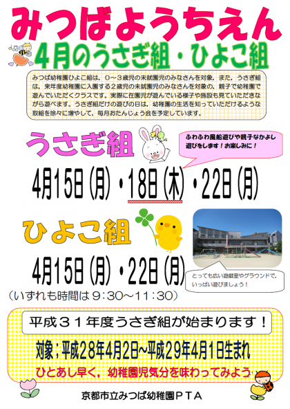 4月の教育相談 うさぎ組・ひよこ組の予定です。
