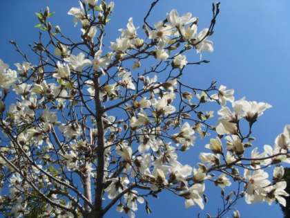 こぶし(小川通り側 もくれんによく似ていますが少し小さな花です。)