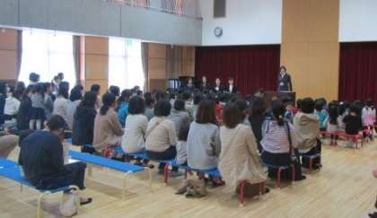 登園してきた子どもたちは,新しいクラス,新しい名札に胸を躍らせ,久しぶりに出会う友達や先生と嬉しそうに笑いあっていました。