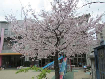園庭の桜も,今日の進級と一学期スタートを祝うかのように満開です。