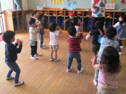 3歳児もも組の子どもたちは,歌ったり踊ったりすることが大好き!