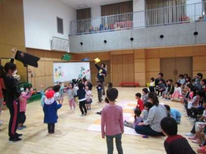 5歳児ゆり組が,司会やプレゼンターを務め,誕生会をすすめてくれました。