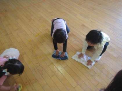 最後は先生がしていた雑巾がけを見て「やりたい!やりたい!」とお掃除も。