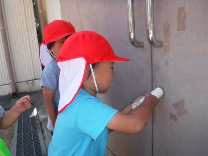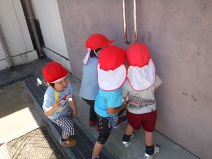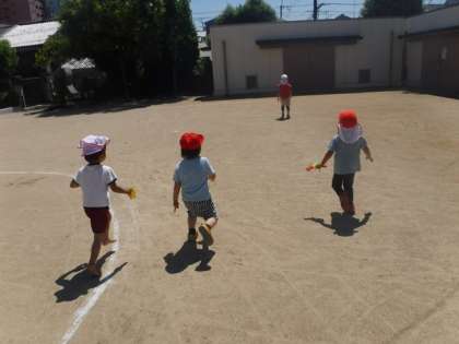 友達と同じことを自分もやってみることが楽しい3歳児の姿でした。