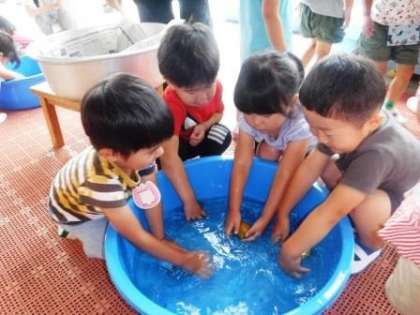 みんなでたらいを囲んで洗っていると,それだけでなんだか楽しくウキウキしてきます。