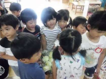 3歳児もも組は,朝いちばんにジャガイモを洗いました。