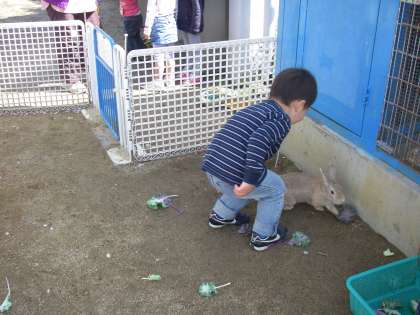 時折脱走するウサギもいるので,その際には気がついたみんなで捕まえに行こうとしたりして,ウサギを中心にして自然と他の子どもたちとのかかわりがあったりもしています。