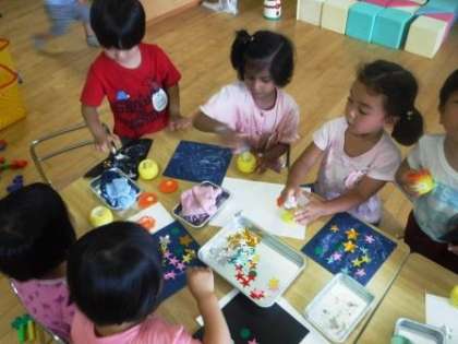 「これお父さん,これお母さん,これはぼく,これはお姉ちゃん」と家族の星を貼ったりと,それぞれが楽しんでいました。