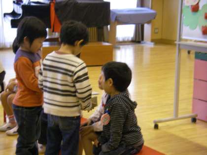 ゆり組やばら組の子どもたちは「誕生会」がどんなものかよく知っていますが,たんぽぽ組やもも組の子どもたちは,幼稚園の誕生会というのが初めてです。遊戯室にみんなで集まるというのも入園式以来です。