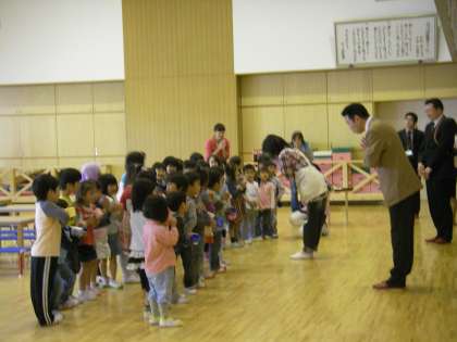 おいしい時間も終わり,みんなでごちそうさまをした後,最後には,ばら組とゆり組の子どもたち全員で鼓月様にお礼をいいました。