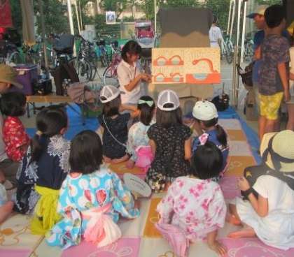 夏のひと時,親子で楽しく過ごされているご家族の様子を見ていると,このような地域の祭りは,きっと子どもの心に夏の思い出として残るのだろうなと思います。