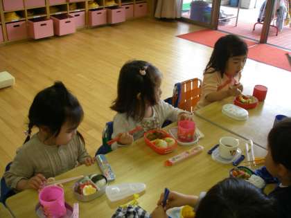 でもお家で食べるのでなく,幼稚園で食べるにはいろいろしなくてはならないことや待たなくてはいけないことなどあり,すぐには食べることができません。