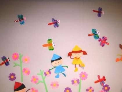 3歳児もも組では,トンボをつくって遊んだ子どももいました。