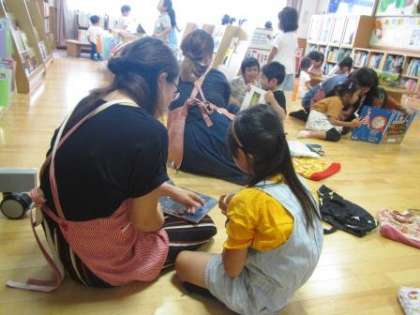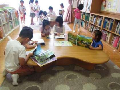 みつば幼稚園には絵本ボランティアさんがいてくださり,子どもたちに絵本を読み聞かせしたり,絵本の整理をしてくださったりしています。