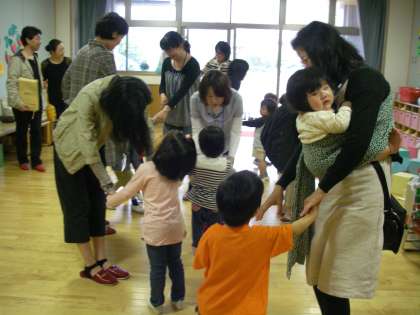 もも組は,お母さんと一緒に「あくしゅでこんにちは」で遊びましたね。