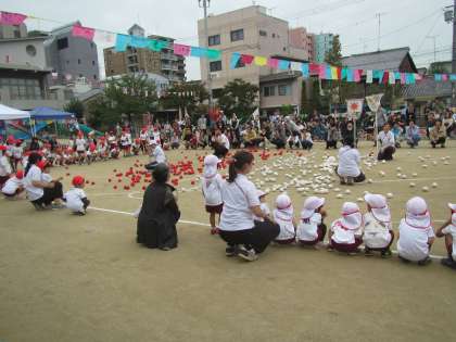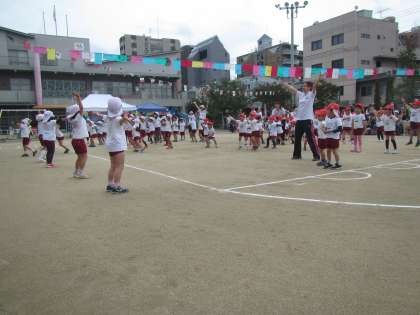 今日は,本当に待ちに待った運動会でした。お客さまもたくさん来て下さって,子どもたちもやる気いっぱいです!みんなでする体操も元気な掛け声が響きました。祖父母や来賓のお客さまと一緒に玉入れも楽しみました。最後にはお家の人と一緒に「キンダーポルカ」を踊りました。お家の人も子どもたちもとても嬉しい笑顔です。園児だけでなく,いろいろな方に参加して頂いて素敵な運動会になりました。応援して下さった皆様,お手伝いにご協力くださった皆様,本当にありがとうございました。