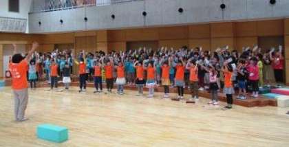 みつば幼稚園の広い遊戯室ですが,5歳児が100人ほど集まると,とても迫力がありました。