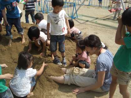 山に登ったり,掘ったり,埋もれたりして遊んでいます。