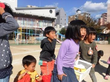 今日は,4歳児ばら組と5歳児ゆり組で一緒に帽子取りをしました。
