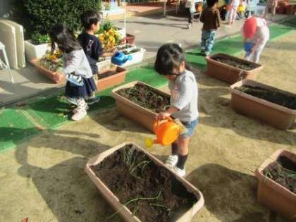 3歳児もも組が,プランターに玉ねぎを植えました。
