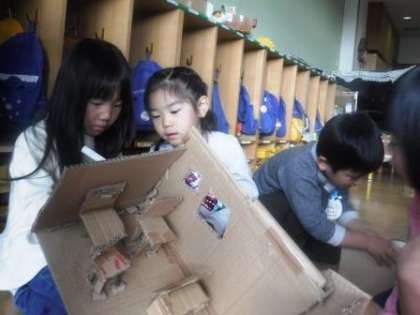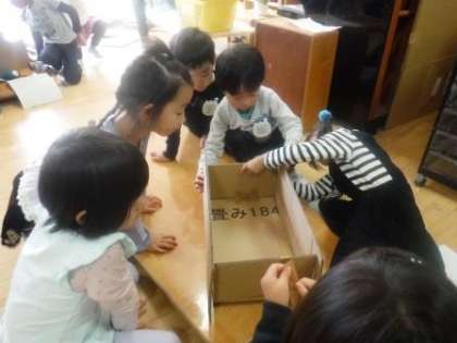 何人かでひとつの物をつくる時には,かならず“相談”と“協力”が必要です。5歳児の今ならではの活動であり,ぜひ今の時期に経験してほしいことでもあります。