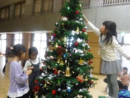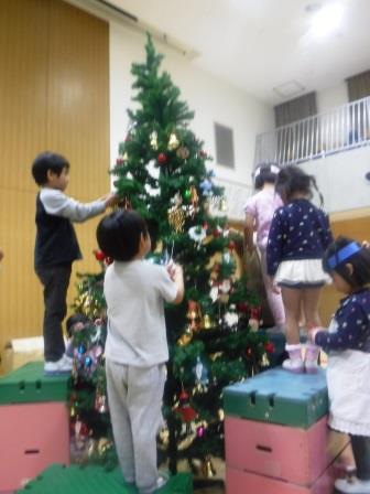遊戯室に,大きな大きなクリスマスツリーを飾りました。