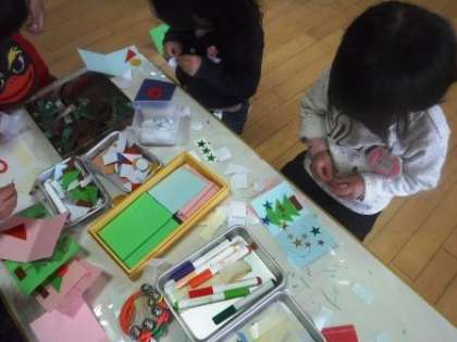 上の写真は,プレゼントのクリスマスカードをつくっているところ。