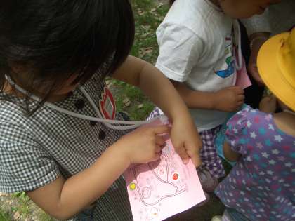シールをいっぱい貼ったカードとおやつを見せてくれました。