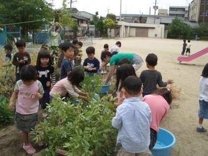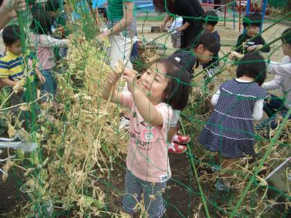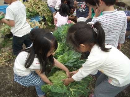 幼稚園の畑の収穫