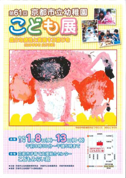 1月8日(水)から13日(月)の期間,こどもみらい館において,第61回 京都市立幼稚園 こども展が開催されます。