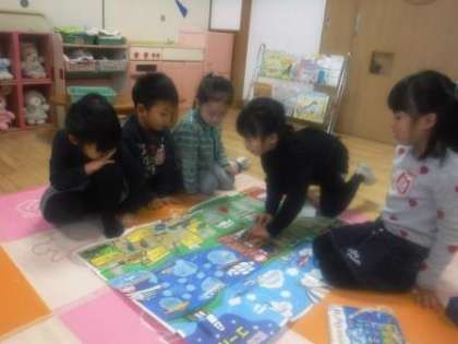 幼稚園では,すごろくやコマ,かるた,トランプなどのカードゲームをお正月の遊びとして遊ぶことができるように用意しています。