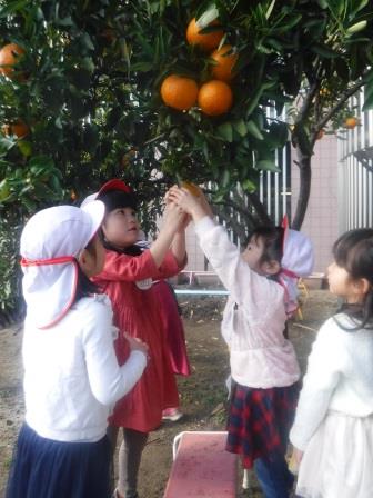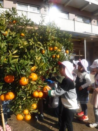 幼稚園の園庭に,みかんの木が1本あります。冬休みを終えて登園すると,すっかり色づいていて,子どもたちはいつ収穫しようかと楽しみにしていました。