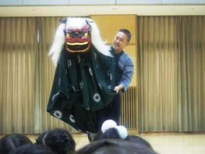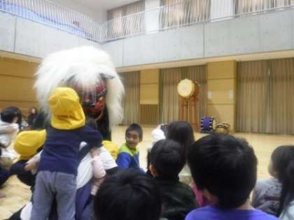 生き生きと動く獅子に,引き寄せられていく子どもたち。