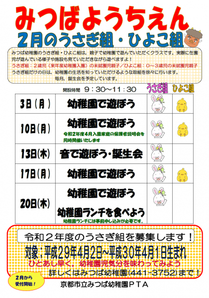 2月のうさぎ組・ひよこ組の予定です。