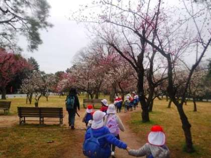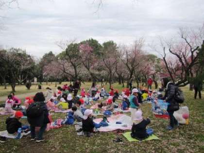 そのあとは,みんなで満開の梅の木の下で,お弁当を食べました。