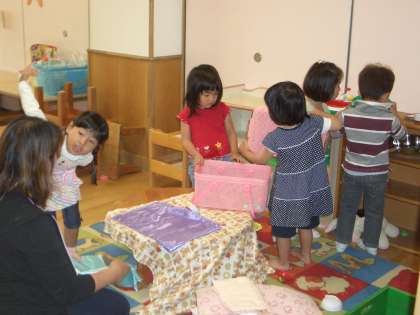お弁当やお帰りの前には,遊んだところを片付けることもできるようになってきました。