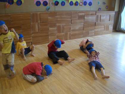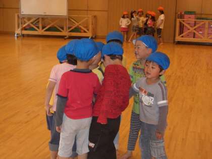 今年の5歳児は帽子とりの遊びが大好きです。