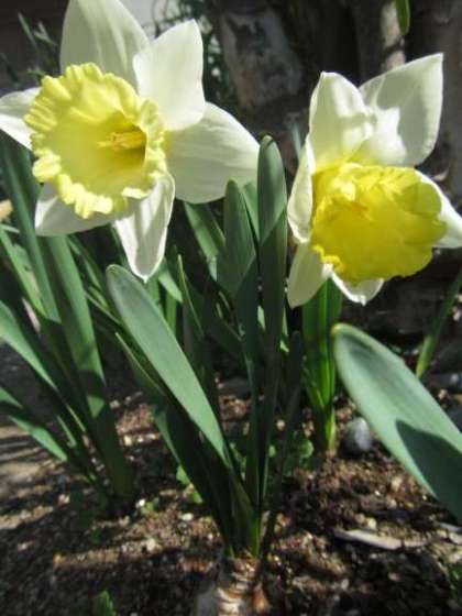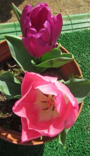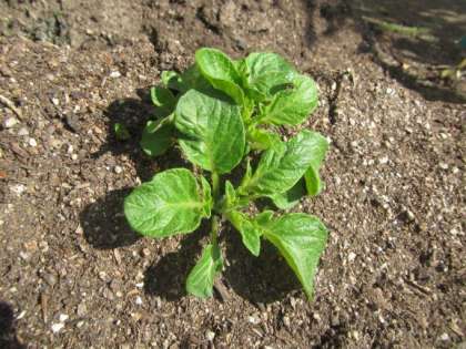 子どもたちが植えたジャガイモから芽が出てきました(写真上)