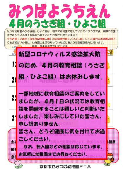 4月教育相談(うさぎ組・ひよこ組)は中止します