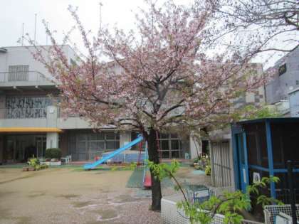 昨日からの雨で園庭の桜が散りました。