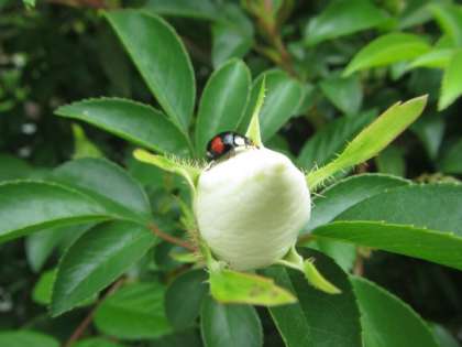 はなの つぼみに てんとうむしが やってきたよ