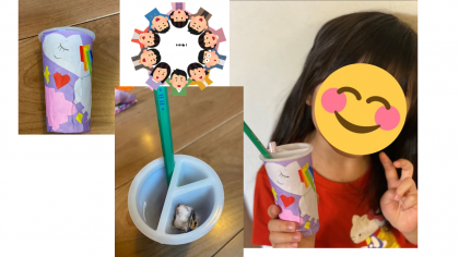 『チョコレート菓子の空き容器を洗ってペン立てを作って遊びました。