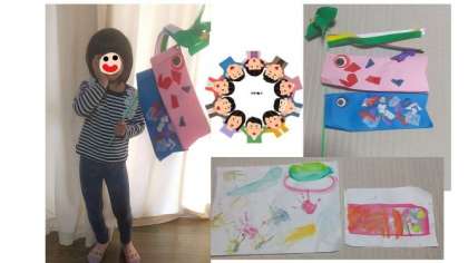 そして,幼稚園から渡した材料でつくったこいのぼりの他,絵具でもこいのぼりをかいたそうです。