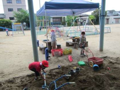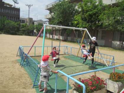 入園式後,初めて幼稚園で過ごす3歳児の子どもたちですが,砂場やブランコなど思い思いに幼稚園で遊ぶことを楽しんでいました。