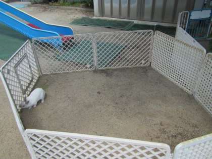 うさぎたちが外で遊ぶ場所を桜の木陰につくりました。
