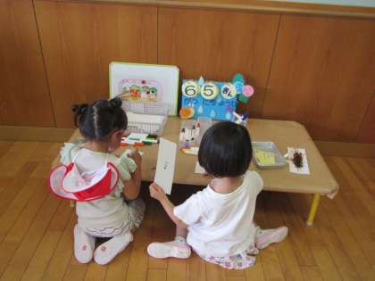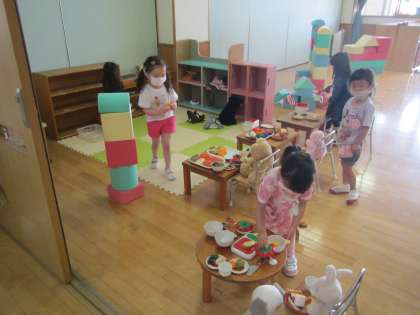 幼稚園での過ごし方にも少し慣れて,各々好きな場所で自分のしたい遊びをしています。