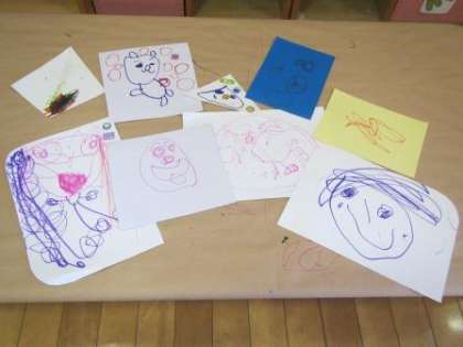保育室では,たくさんのごちそうを並べて,レストランごっこをしました。お気に入りのぬいぐるみにもごちそうを食べさせてあげていました。お絵かきコーナーでは「お母さんかいたよ!」と可愛らしい絵を見せてくれました。
