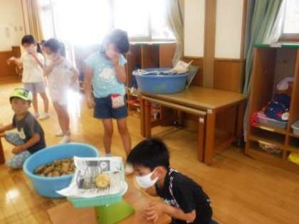 ゆり組は,先日収穫したじゃがいもを持ち帰るため,はかりを使いました。