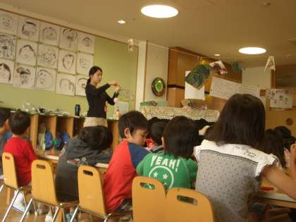 教育実習に来られた学生さんは,何度か実際に保育の実習をします。