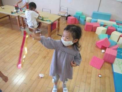 セロハンテープに苦戦している子どももいましたが,3歳児らしい可愛らしい流れ星が出来上がっていましたよ。